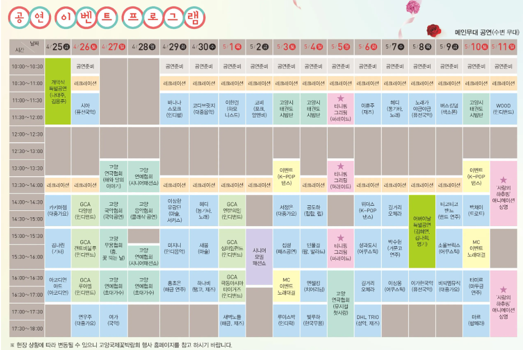 🎤 2025 고양국제꽃박람회 특별공연 일정표