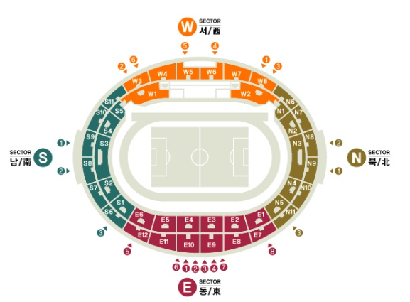 콘서트 개최 시 고양종합운동장은 보통 다음과 같이 구성됩니다.