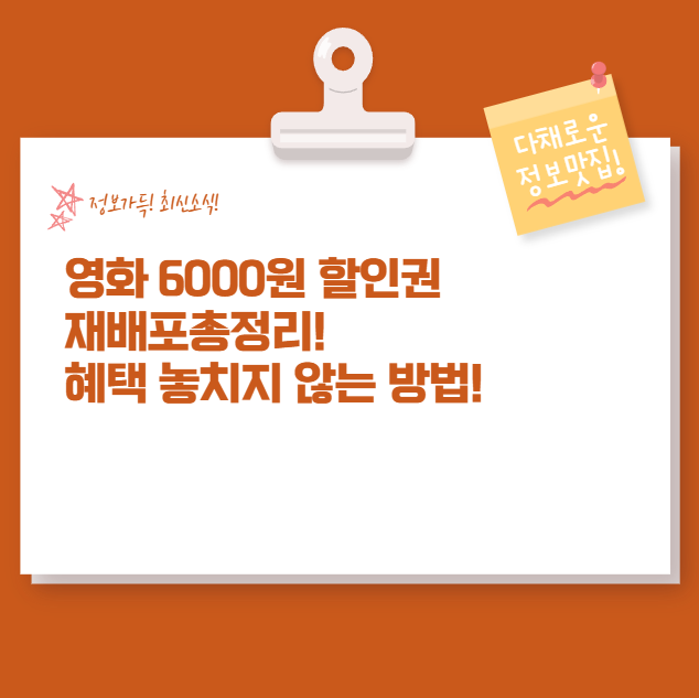 2025년 9월 8일부터 영화관람 6000원 할인권이 추가 배포됩니다!