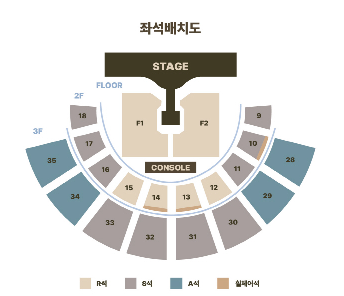 - FLOOR: 무대와 가장 가까운 평지석 (F1, F2)
